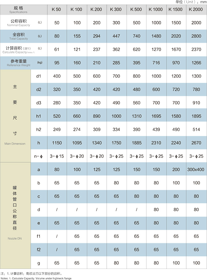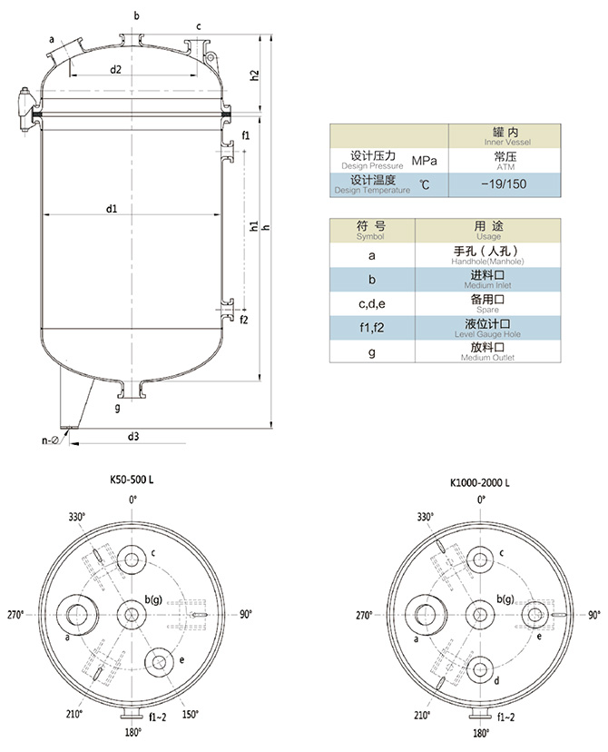 2.搪玻璃開式反應釜參數表