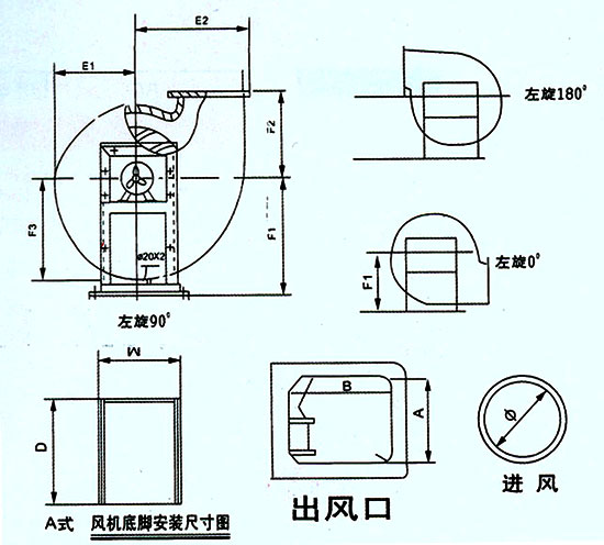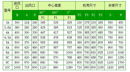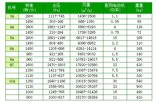 A式為葉輪和電機直聯,C式二種,900轉-1250轉為軸座傳動,1250轉-1600轉為軸承箱傳動