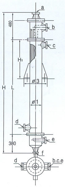 d-冷卻水進 e-尾氣出口 f-成品出口