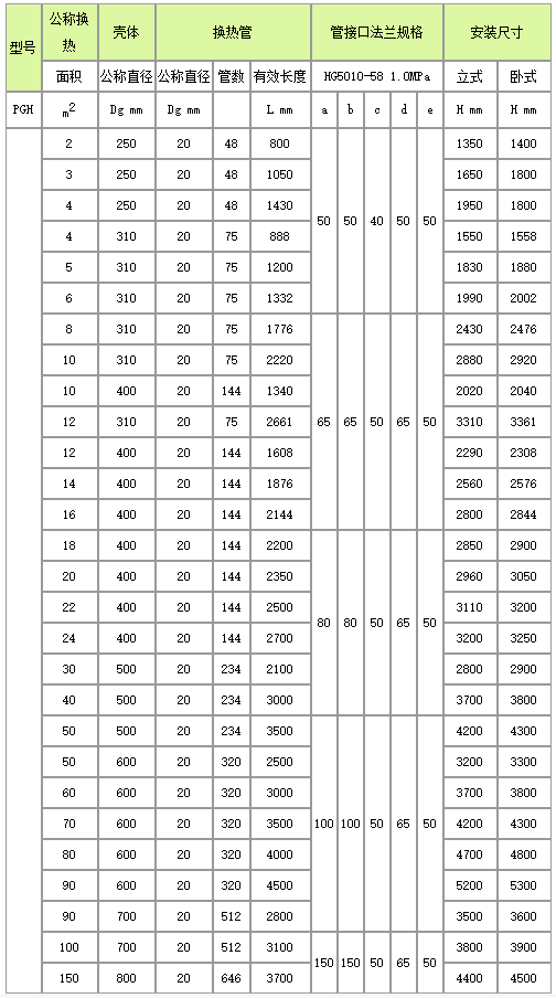 管口使用表: a.介質入口或出口;b.介質入口或出口;c.冷卻水入口;d.冷卻水出口;e.排淨口