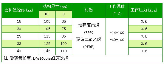 玻璃管法蘭視鏡型號規格及安裝尺寸表: