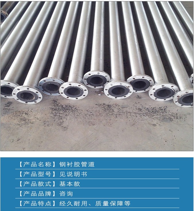 管材的增強骨架鋼管與橡膠層使用高性能的粘合劑複合為一個整體,克服了鋼管耐壓不耐磨, 塑料、橡膠耐磨不耐壓以及玻璃鋼脆抗衝擊性能差等缺點,同時具備鋼管和耐磨橡膠的共同優點,綜合性價比。