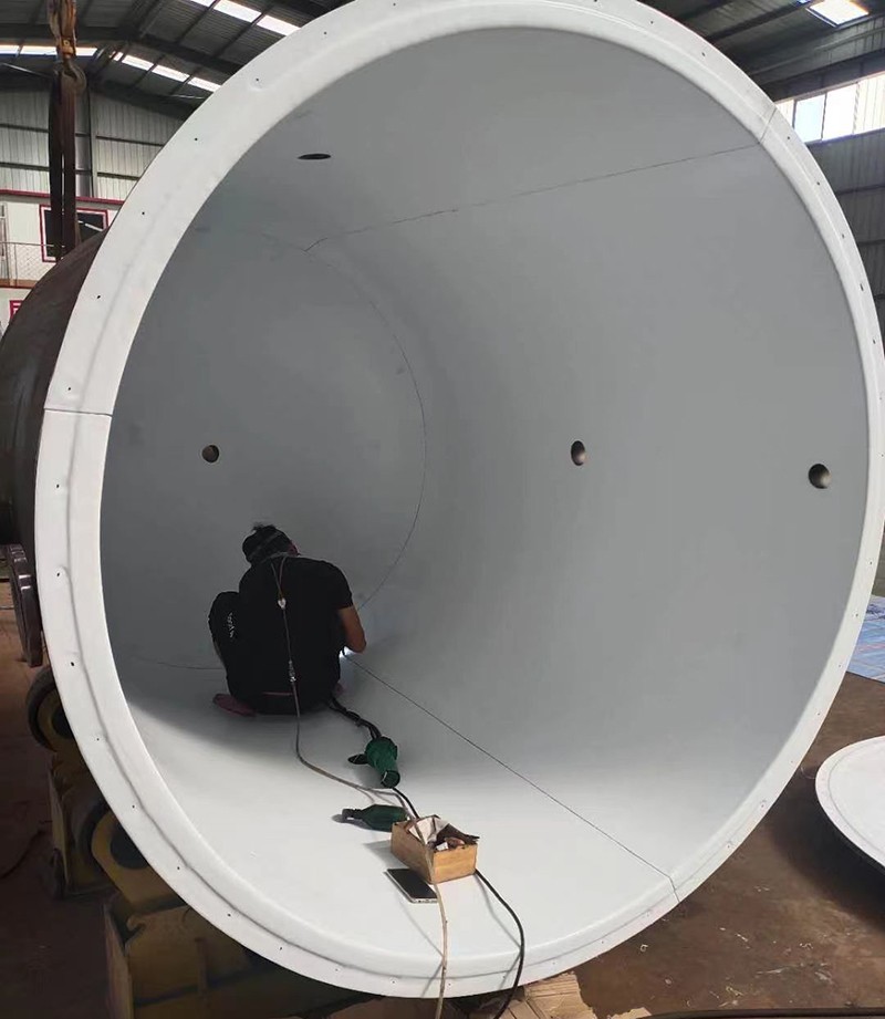 6、噴塗四氟塗層檢查,在噴塗過程中及噴塗完一個罐後,對全部塗層進行檢查,主要檢查有否漏噴,表麵是否平整光滑和機械損傷等可見缺陷,然後進行修補。